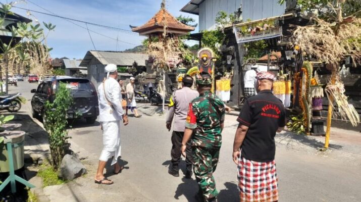 Gentra.co.id –Babinsa Desa Macang Koramil 1623-07/Bebandem Pelda I Gede Bagia Oka Mahendra melaksanakan pengamanan upacara keagamaan (upacara peringatan 18 bulan upacara Ngenteg Linggih lan Ngersi Gana), di Pura Patokan Banjar Adat Dukuh, Desa Adat Macang, Desa Macang, Kec. Bebandem, Kab. Karangasem, pada Sabtu siang (03/05/25).