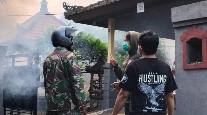 Babinsa Desa Baturinggit Pelda I Gede Agus Wirya disela-sela kegiatan fogging mengatakan “saya selaku Babinsa turut mendampingi petugas Dinas Kesehatan melaksanakan fogging di Desa binaan” jelasnya.
