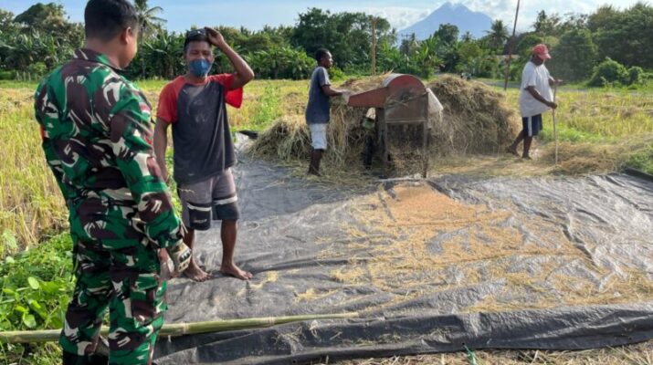 Flotim – Sebagai upaya mendukung program pemerintah meningkatkan ketahanan pangan, Anggota Koramil 1624 – 02/Adonara Kopda I Gede Arianto Putra melaksanakan pendampingan kepada para petani di wilayah binaan dengan terjun langsung membantu para petani untuk merontokan padi di Desa Waiwadan, Kecamatan Adonara Barat, Kabupaten Flotim, Minggu (04/05/2025).