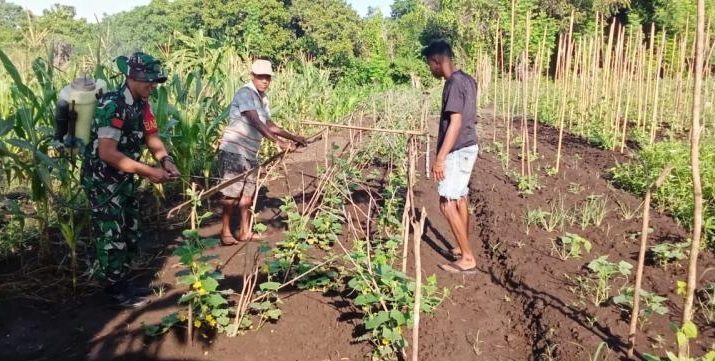Babinsa Koramil 1624-02/Adonara Membantu Warga Dalam Perawatan Tanaman Timun