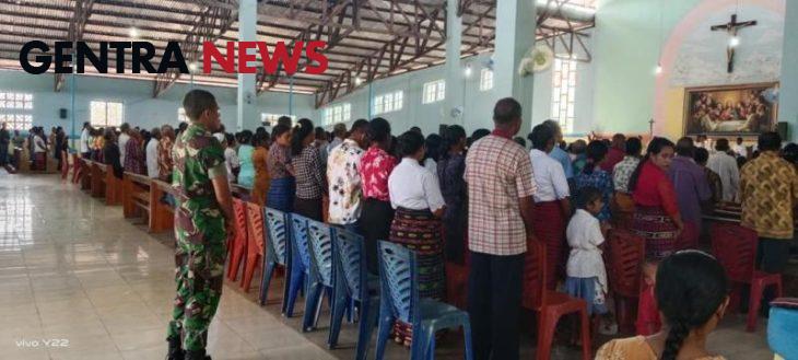 Pelaksanaan misa di ikuti jemaat berkisar 450 Orang tersebut mendapatan pengamanan dari Babinsa Koramil 1624-07/Nagawutung untuk memastikan pelaksanaan ibadah dapat berjalan aman dan kondusif.