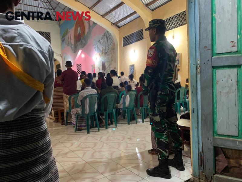 Pelaksanaan misa tersebut mendapatan pengamanan dari Babinsa Koramil 1624-07/Nagawutung untuk memastikan pelaksanaan ibadah dapat berjalan aman dan kondusif.