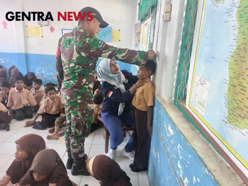 Gentra News NTT – Lembata, Babinsa Koramil 1624 – 07/Nagawutung Praka Marshal yudha prasetya melaksanakan kegiatan pemantauan Skrining kesehatab yang bertempat di SDN Kartini Labala, Desa Leworaja, Kecamatan Wulandoni Kab. Lembata. Jumat (25/10/2024).