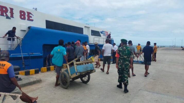 Babinsa Koramil 1627-01/Ba’a, Sertu Delfi Amalo, melaksanakan kegiatan pemantauan rutin di Pelabuhan Ba’a, Kelurahan Namodale, Kecamatan Lobalain, Kabupaten Rote Ndao.