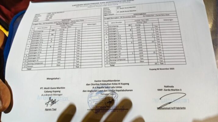 Rote Ndao, 6 November 2025 – Dalam rangka memastikan situasi keamanan dan ketertiban di wilayah binaan tetap kondusif, Babinsa Koramil 1627-04/Pantai Baru, Sertu Andri Muskananfola, melaksanakan kegiatan pengamanan dan pemantauan di Pelabuhan ASDP Pantai Baru, Desa Ofalangga, Kecamatan Pantai Baru, Kabupaten Rote Ndao, pada Kamis (6/11/2025) malam.