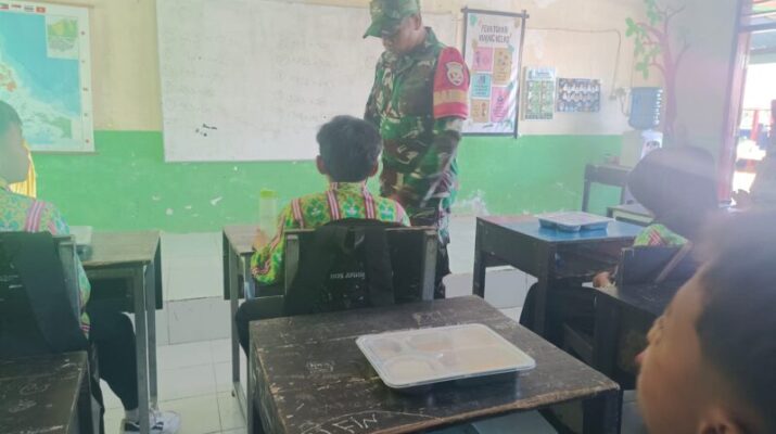 Sumbawa Barat, NTB – Dalam upaya mendukung program pemerintah dalam meningkatkan gizi anak-anak usia sekolah, Babinsa Desa Moteng, Serda Heriyanto dari Koramil 1628-01/Taliwang, melaksanakan kegiatan pendampingan makan bergizi di SD Moteng, Desa Moteng, Kecamatan Brang Rea, Kabupaten Sumbawa Barat, pada Kamis (17/07/2025) pukul 09.10 WITA.