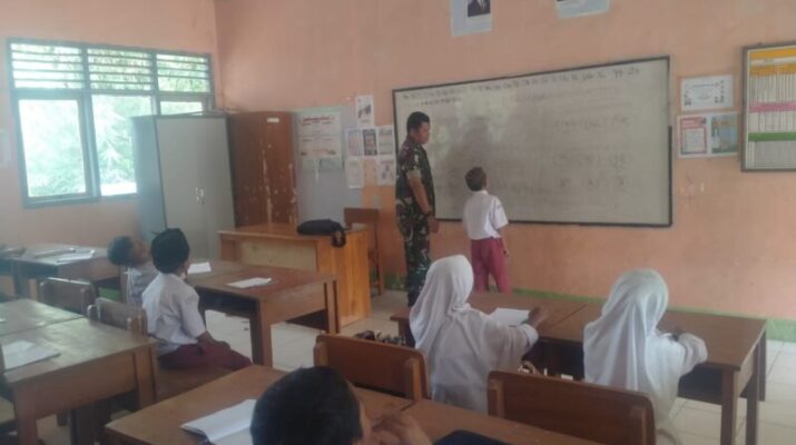 Sumbawa Barat, NTB – Dalam upaya mendukung peningkatan kualitas pendidikan di wilayah binaannya, Babinsa Desa Mantar Koramil 1628-04/Poto Tano, Serda Hendry, melaksanakan kegiatan pemberian materi pembelajaran Matematika Gasing (Gampang, Asyik, dan Menyenangkan) kepada para siswa SDN Mantar, Selasa (04/11/2025) pukul 09.40 WITA.