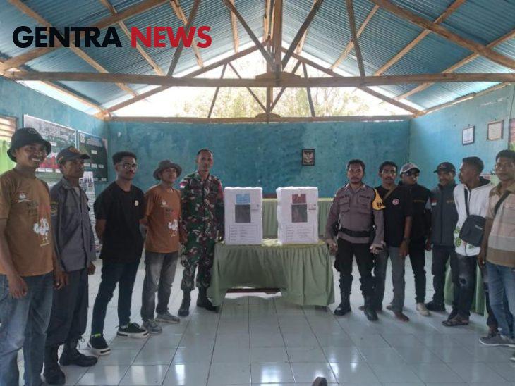 Gentra News NTT – KODIM 1605/BELU, Babinsa jajaran Koramil 1605-04/Betun melaksanakan kegiatan pengamanan terhadap pendistribusian surat suara dan kotak suara Pilkada serentak 2024 dari PPK Kecamatan ke PPS Desa-Desa yang ada di wilayah teritorial Koramil Betun, Kabupaten Malaka, Selasa (26/11/2024).