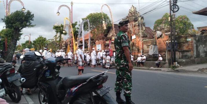 Babinsa Koramil Blahbatuh Pastikan Arus Lalin Lancar Saat Rangkaian Upacara Adat Buruan