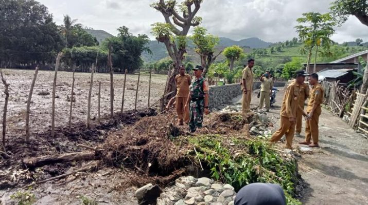 NTB -Dompu. Babinsa Desa Kramat, Sertu Ahmad Rifaid dan kepala Desa Kramat Mutlak beserta staf, Kamis pagi (5/12/2024) melakukan peninjauan terhadap kerusakan tanggul akibat hantaman banjir yang terjadi pada Rabu sore (4/12/2024) kemarin.
