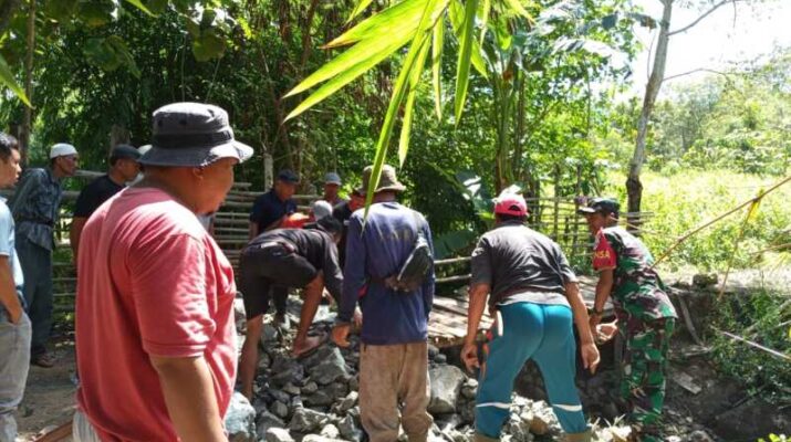 Gentra.co.id Dalam semangat kebersamaan dan kepedulian terhadap pembangunan desa, Babinsa Desa Labuhan Kertasari, Babinsa kertasari Serda Mursaha melaksanakan kegiatan gotong royong bersama warga dan perangkat desa dalam pembangunan jembatan jalan tani di RT 08, Dusun Padak Baru, Desa Labuhan Kertasari, Kecamatan Taliwang, Kabupaten Sumbawa Barat, Sabtu (12-04-2025) pukul 08.00 WITA.