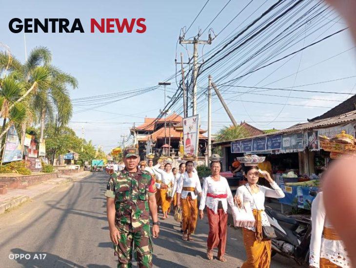 Gentra News Bali – Gianyar – Lebih, Babinsa Desa Lebih Koramil 1616-01/Gianyar Serka Wayan Suama bersinergi dengan Pecalang Desa Adat Kesian melaksanakan pengaturan lalulintas untuk mendukung keamanan Krama Adat yang sedang melaksanakan Upacara Nunas Tirta Ning ke Beji Tukad Sansang Kesian rangkian Upacara Penyineban Piodalan di Pura Subi Agung Desa Adat Kesian. Sabtu (12/10/2024)