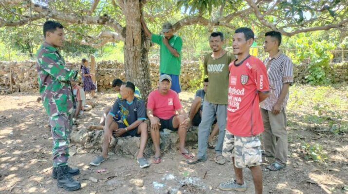 NTT-NAIKLIU, – Babinsa Posramil Manubelon Koramil 1604-03/Naikliu, Serka Lodian Wila Radja melaksanakan komunikasi sosial (komsos) bersama warga binaannya di Dusun III Oelamopu, Desa Manubelon, Kecamatan Amfoang Barat Daya, membahas kondisi cuaca ekstrem yang belakangan melanda wilayah tersebut. Dalam komsos tersebut, Babinsa mengingatkan pentingnya kewaspadaan terhadap angin kencang yang sering terjadi terutama di wilayah pesisir. Minggu (15/06/2025).