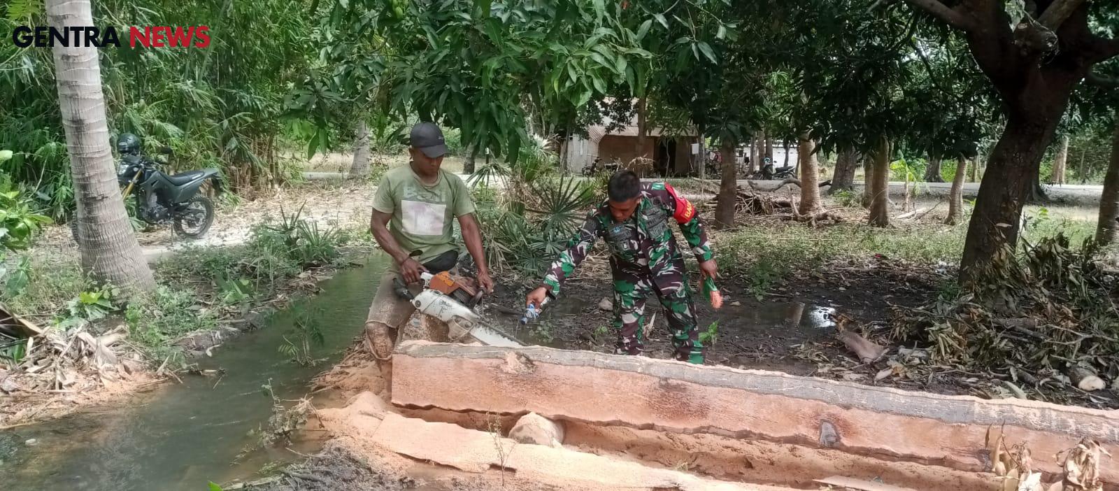 Seperti halnya yang dilakukan Babinsa Koramil 05/Waingapu Kodim 1601/Sumba Timur. Sertu Antonius Koparihi melaksanakan kegiatan gotong royong bersama warga dalam memotong pohon untuk dibuat papan atau balok di Desa Pambotadjara, Kecamatan Kota Waingapu, Kabupaten Sumba Timur, Jumat (02/08/2024)