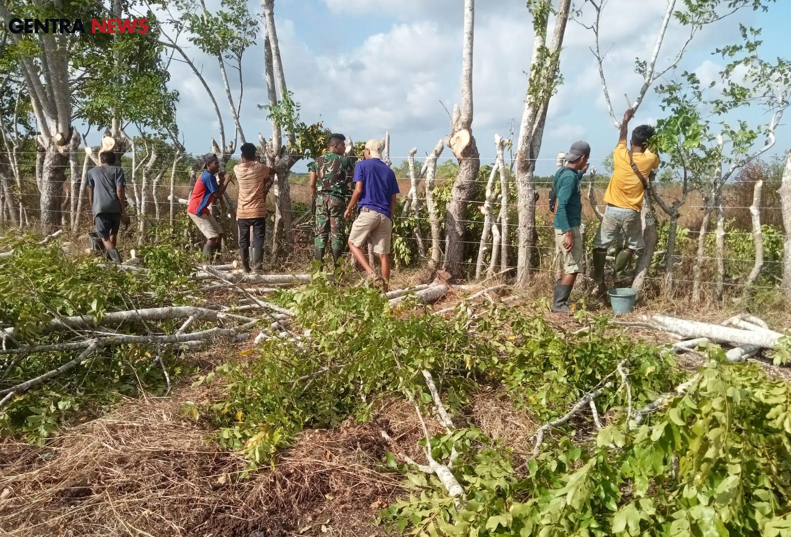 Gentra News NTT – Sumba Timur, Babinsa Membantu Pemasangan Pagar Di PT PTPN Dan Melakukan Komsos.