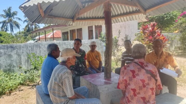 NTT-KUPANG, – Babinsa Koramil 1604-04/Amarasi wilayah binaan Desa Niukbaun, Kecamatan Amarasi Barat, Kabupaten Kupang, Sertu Sefi Zeth Pandie melaksanakan kegiatan komunikasi sosial (Komsos) bersama Bapak Markus Rohi selaku tokoh agama sekaligus pendeta Gereja Pantekosta, serta perangkat BPD Desa Niukbaun. Pertemuan yang berlangsung di Lopo Dusun 4 tersebut membahas kesiapan lahan yang akan digunakan untuk pembangunan Koperasi Merah Putih di wilayah desa tersebut. Rabu (29/10/2025).