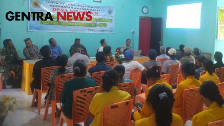 Gentra News NTT – Kupang – Babinsa Niukbaun Koramil 1604-04/Amarasi, Serka Fileph Imanuel Pairikas menghadiri rapat musyawarah untuk pengesahan Rencana Pembangunan Jangka Menengah Desa (RPJMDes) Perubahan Tahun Anggaran 2024-2030. Rapat yang digelar di aula kantor Desa Niukbaun Kecamatan Amarasi Barat, Kabupaten Kupang, ini dihadiri oleh Bhabinkamtibmas dan berbagai elemen masyarakat Jumat (15/11/2024).