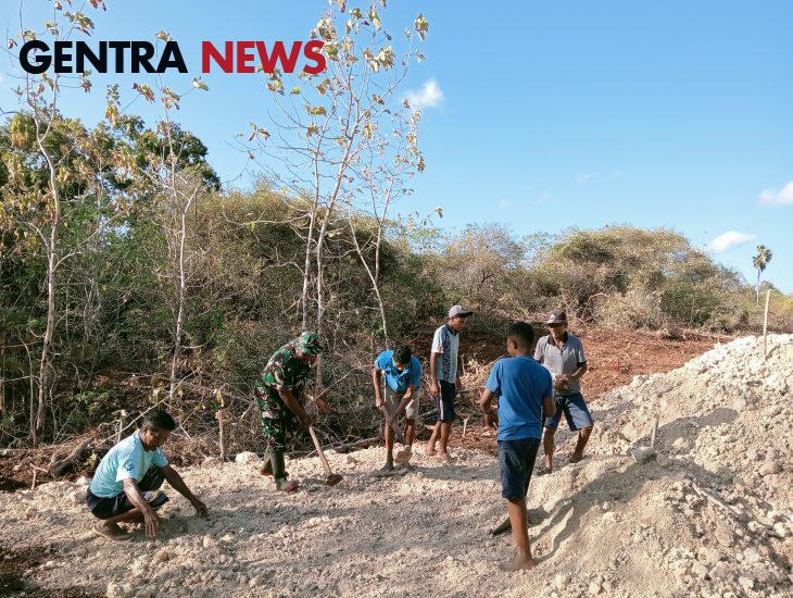 Babinsa Noelbaki dan Jemaat Gereja Gotong Royong Bangun Jalan