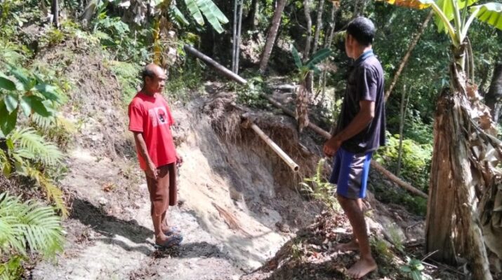 Tanah longsor yang terjadi akibat curah hujan tinggi menyebabkan saluran air tertimbun material tanah dan batu, sehingga pasokan air ke pompa hidram yang digunakan masyarakat untuk kebutuhan sehari-hari menjadi terputus. Warga yang mengetahui kejadian tersebut segera melapor kepada Babinsa untuk penanganan awal.