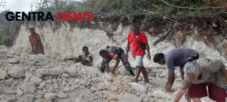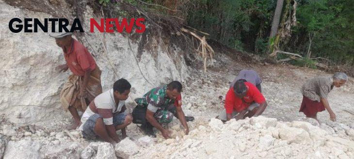 Gentra News NTT – Kupang – Babinsa Oesena Koramil 1604-04/Amarasi, Serda Yornam T. Kase, melaksanakan karya bhakti pemasangan batu pinggir jalan sepanjang 600 meter pada pembukaan jalan penghubung antara Dusun 2 dan Dusun 3 di Desa Oesena, Kecamatan Amarasi, Kabupaten Kupang, Jumat (11/10/2024).