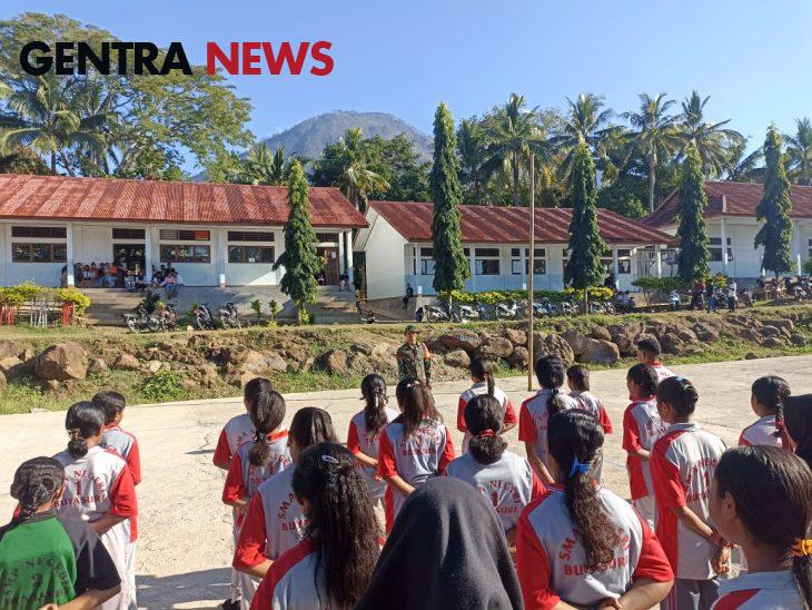 Gentra News NTT-Lembata – Babinsa Koramil 1624-04/Omesuri Kodim 1624/Flotim Serda julkifli, Praka Syamsuddin dan Pratu Armindo Monteiro memberikan materi kepada peserta didik Baru SMAN 1 BUYASURI di Desa Panama, Kecamatan Buyasuri, Kabupaten Lembata. Rabu (17/07/2024).
