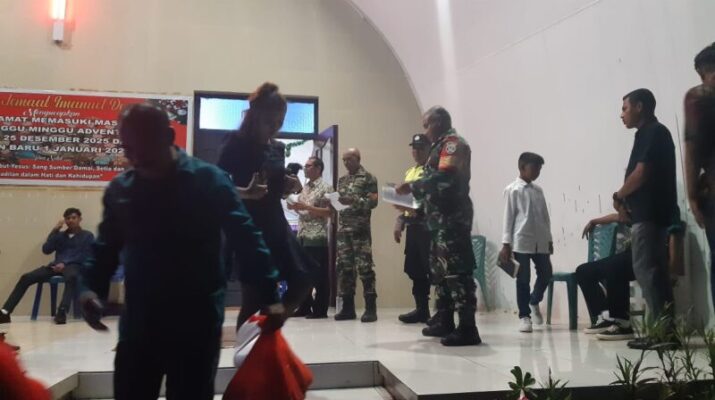 Selama pelaksanaan ibadah, anggota Koramil melakukan pengamanan di sekitar area gereja, baik di dalam maupun di luar lingkungan gereja. Pengamanan dilakukan dengan pendekatan yang humanis, bersinergi dengan pengurus gereja dan panitia Natal, guna memastikan jalannya ibadah berlangsung tertib dan lancar tanpa adanya gangguan keamanan.