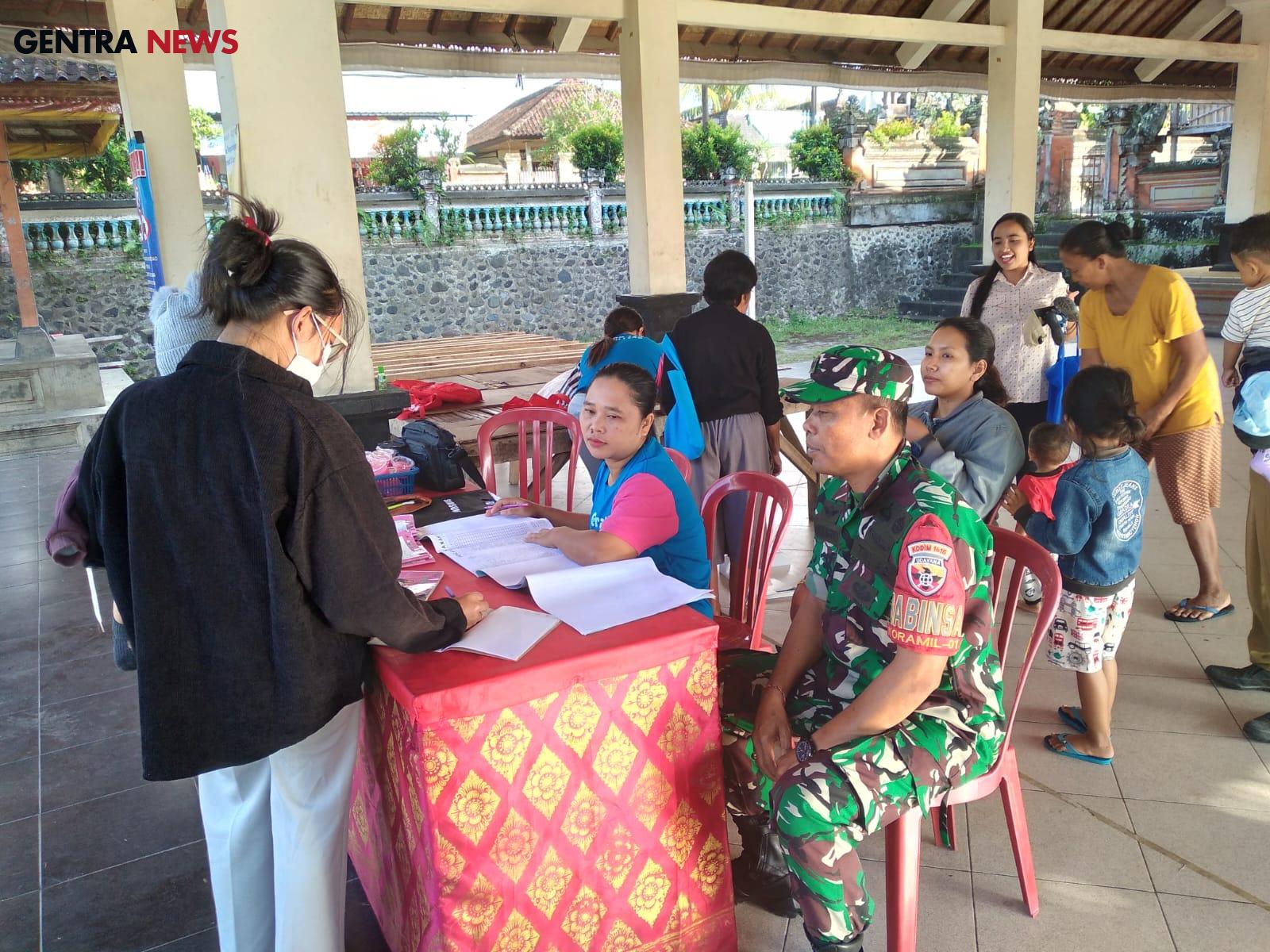 Gentra News Bali – GIANYAR, Bintara Pembina Desa Sidan Sertu I Wayan Mardika bersama Kadus Sidan Kelod Dewa Adi Angga Putra memantau kegiatan Posyandu di Banjar Sidan Kelod, Desa Sidan Kec/Kab.Gianyar. Senin (8/7/24)