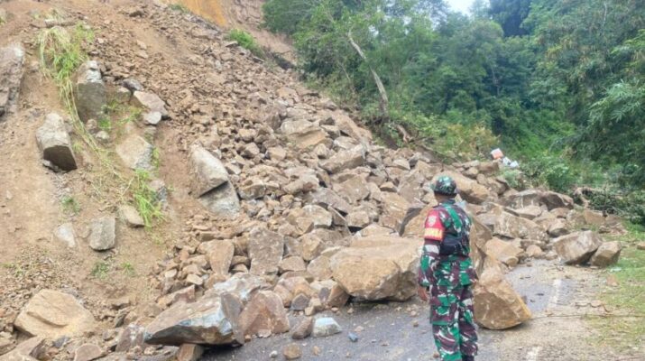 Untuk saat ini Babinsa 1602 – 02/Wolowaru an. Serda Antonius Wae Bersama Pratu Muhamad Dhiki wanda, berkordinasi dengan petugas PUPR untuk membantu melaksanakan pembersihan longsoran.