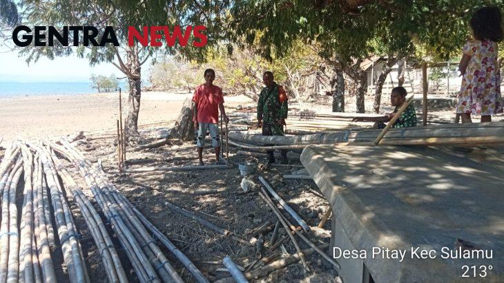 Gentra News NTT – Kupang – Babinsa Pitay Koramil 1604-05/Sulamu, Sertu Yeskial Liu, menunjukkan kepeduliannya terhadap warga pesisir pantai dengan membantu para nelayan merakit bahan bambu untuk dijadikan bagang. Bagang tersebut merupakan rakit milik Bapak Matat Pian yang akan digunakan sebagai alat penangkap ikan di laut. Minggu (08/09/2024).