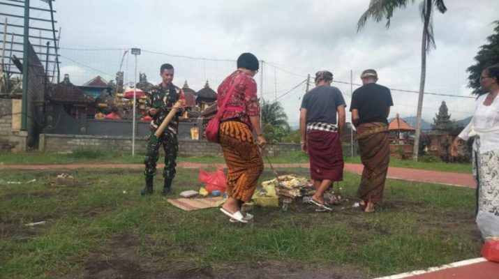 Dalam penyampaiannya, Koptu Wayan Surtamaya menyampaikan bahwa upacara mecaru ini digelar di lapangan volly lingkungan pegending.