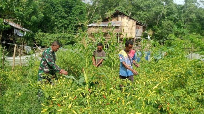 Sertu Ananias Valentim terjun langsung ke lahan pertanian bersama warga untuk memanen cabai yang menjadi salah satu komoditas unggulan daerah tersebut.