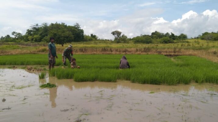 NTT – Sumba Timur. Babinsa Koramil 01/Lewa, Kodim 1601/Sumba Timur,Sertu I Nengah Suardiyasa, melaksanakan kegiatan pendampingan ketahanan pangan (Hanpangan) dengan membantu masyarakat mencabut bibit padi sawah yang akan ditanam di Desa Kambuhapang, Kecamatan Lewa, Kabupaten Sumba Timur,Senin (22/12/2025).