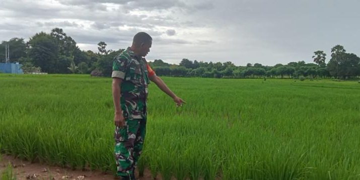 Gentra.co.id NTTĀ – NTT-KUPANG – Babinsa Koramil 1604-06/Batakte Sertu Ruben A. Tiumlafu turun melaksanakan pemantaun terhadap tanaman padi ladang seluas 150 hekta are milik Kelompok Tani (Poktan) di Desa Oben, Kecamatan Nekemese, Kabupaten Kupang, NTT.