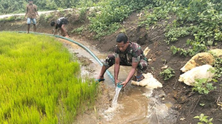 Untuk itu, Babinsa Sertu Samuel Lede dari Koramil 01/Loli Kodim 1613/Sumba Barat, menunjukkan kepeduliannya dengan membantu warga Desa Beradolu Kecamatan Loli Kabupaten Sumba Barat, dalam pengairan sawah menggunakan mesin pompa air, Jumat (17/01/2025).