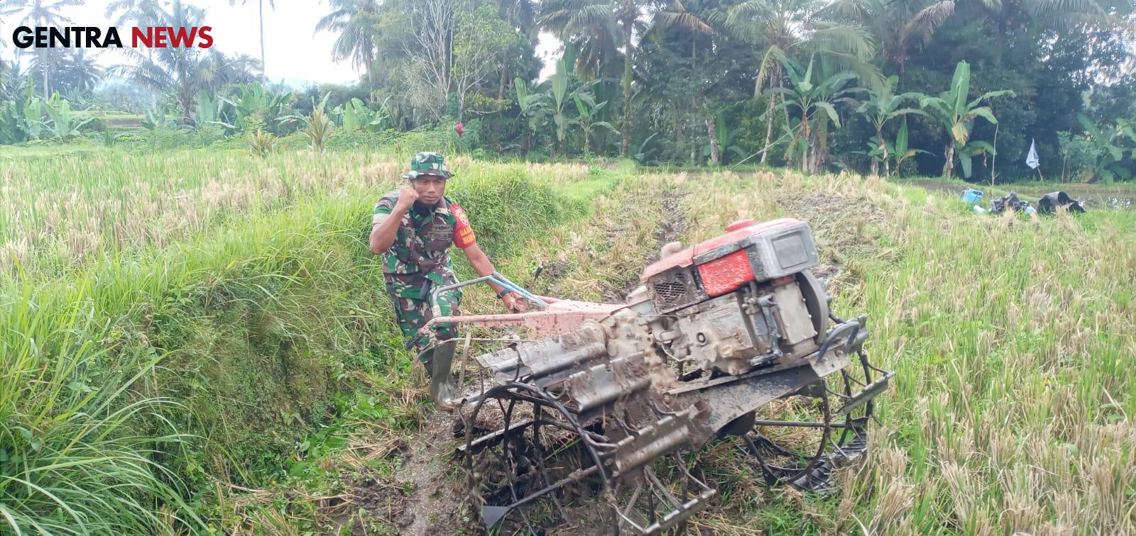 Sertu I Made Sudarta, selaku Babinsa melakukan pendampingan ketahanan pangan pengolahan lahan sawah luas 25 are dengan pemilik sawah I Putu Rata