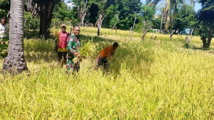 Gentra.co.id –NTT-KUPANG, – Dalam rangka mendukung program Ketahanan Pangan (Hanpangan) yang dicanangkan Presiden RI Prabowo Subianto, Babinsa Soliu Koramil 1604-03/Naikliu, Serda decky sufmera melaksanakan pemantauan langsung terhadap kegiatan panen padi tadah hujan milik warga binaan. Kegiatan ini dilakukan di lahan milik Bapak Matias Tamelab seluas 20 are, yang terletak di RT 02, Dusun 01, Desa Soliu, Kecamatan Amfoang Barat Laut, Kabupaten Kupang. Selasa (22/04/2025).