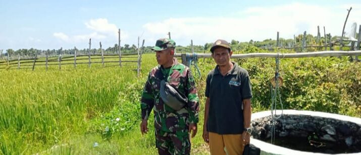 NTT-KUPANG, – Babinsa Nuataus Koramil 1604-05/Sulamu, Serka Simran Masus, melaksanakan kegiatan komunikasi sosial (komsos) bersama petugas PPL dan para pemilik lahan sawah di Desa Nuataus, Kecamatan Fatuleu Barat, Kabupaten Kupang. Pertemuan ini membahas persoalan kekurangan sumber air yang dialami petani selama musim kemarau, terutama dalam memenuhi kebutuhan air untuk lahan sawah seluas kurang lebih satu hektar di wilayah tersebut. Senin (13/10/2025).