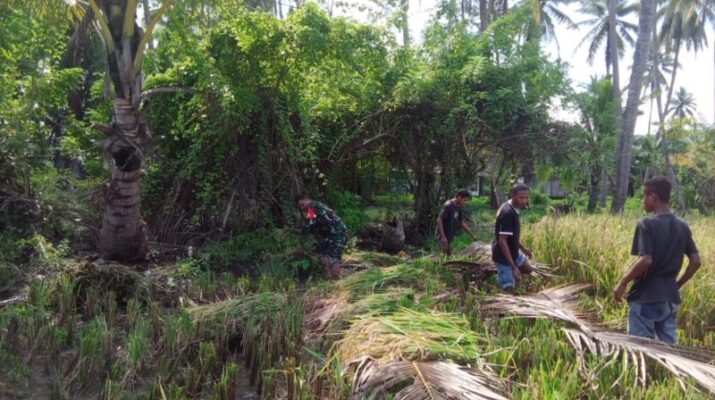 NTT-SIKKA Dalam upaya meningkatkan swasembada pangan dan ketahanan pangan di wilayahnya, Babinsa Koramil 1603-02/Talibura, Kodim 1603/Sikka Paraka Mansyur, melaksanakan panen raya padi bersama masyarakat Desa Bangkoor, Kecamatan Talibura, Kabupaten Sikka, Senin(19/05/2025).