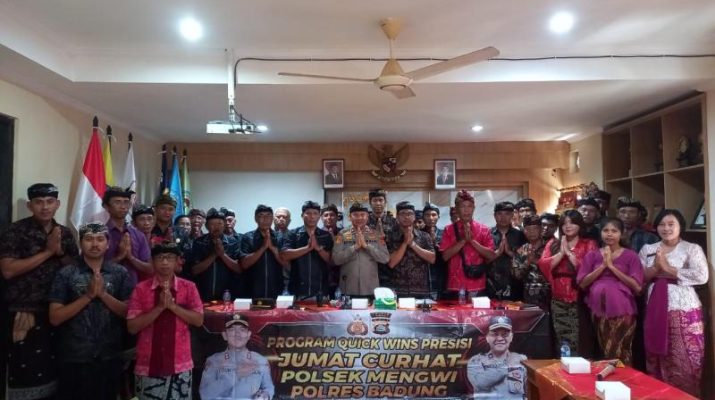 Gentra.co.id BaliĀ – MENGWI – Kepala Kepolisian Sektor Mengwi Kompol I Ketut Adnyana T.J S.Sos.,S.H.,M.M., melaksanakan kegiatan Jumat Curhat di aula Kantor Desa Sembung, Kecamatan Mengwi, Kabupaten Badung, Bali. Jumat (10/1/2025) pukul 09.00 wita
