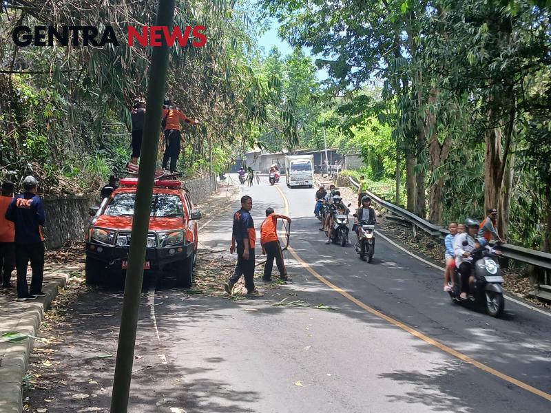Kapolsek Banjarangkan AKP I Made Sutika saat melaksanakan patroli dengan personelnya melihat dahan pohon bambu yang menghalangi badan jalan yang segera menghubungi Tim BPBD Kabupaten Klungkung.