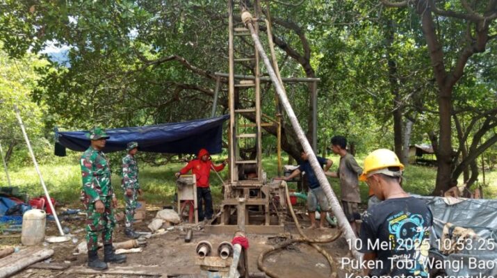 Gentra.co.id –Flotim – Untuk meningkatkan kesehatan masyarakat serta kebutuhan sarana air bersih di di tengah musim kemarau, TNI Manunggal Membangun Desa (TMMD) ke 124 TA 2025, Kodim 1624/Flotim, membuat 2 sumur bor tersebar di Kelurahan Puken Tobi Wangibao dan Kelurahan Sarotari, Kecamatan Larantuka, Kabupaten Flotim. Minggu (11/05/2025).