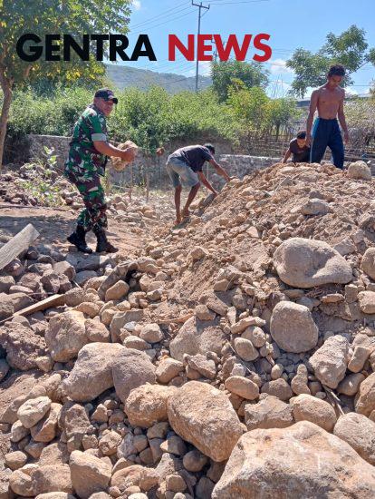 Gentra News NTT-Flores Timur-Guna terciptanya sinergitas dan kemanunggalan TNI bersama Rakyat, Babinsa Koramil 1624-02/Adonara Kopda Indrawan Wongso dan Kopda I Gede Arianto P melaksanakan karya bakti membantu pembuatan pondasi pembangunan rumah Bapak Kopong salah satu warga binaan di Desa Duwanur Kec. Adonara Barat Kab. Flores Timur.Jumat (05/07/2024).