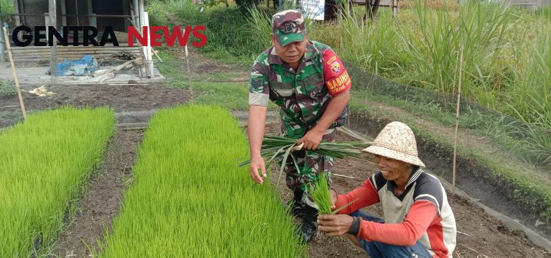 Klungkung,- Sebagai upaya untuk mendukung peningkatan ketahanan pangan pertanian di wilayah, Serma Wayan Sukadana Babinsa Getakan melaksanakan pendampingan dengan membantu para petani di wilayah binaannya.