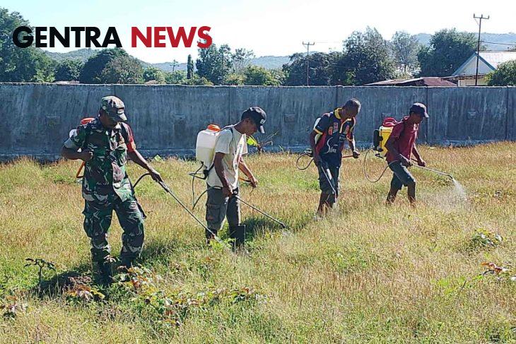 Gentra News NTT – KODIM 1605/BELU, Dalam mendorong ketersediaan cabai di wilayah, Sertu Maximus Nahak Babinsa Desa Litamali Koramil 1605-05/Kobalima membantu kelompok Tani Moris Foun melaksanakan pembasmian gulma utk persiapan menanam cabai di Dusun Sukabikole, Desa Litamali, Kecamatan Kobalima, Kabupaten Malaka, Minggu (14/7/2024).