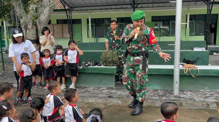 Tidak hanya dikenalkan dengan berbagai hal terkait tugas maupun perlengkapan militer saja, anak-anak TK inipun diberikan kesempatan untuk mencoba peralatan yang biasa dipakai tentara, seperti halnya rangsel, helm, senjata dan kendaraan dinas.