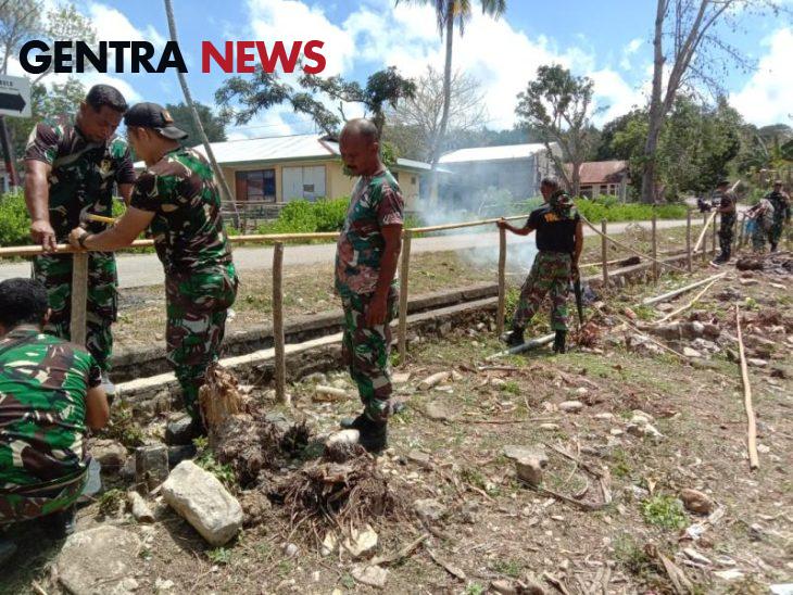 Gentra News NTT – KODIM 1605/BELU, Dalam melaksanakan pemeliharaan dan pembenahan pangkalan sebagai wujud dari pembinaan satuan, Koramil 1605-05/Kobalima melaksanakan kerja bakti pembersihan dan pembangunan pagar kantor Sub Koramil Boas, Kecamatan Malaka Timur, Kabupaten Malaka, Sabtu (28/9/2024).