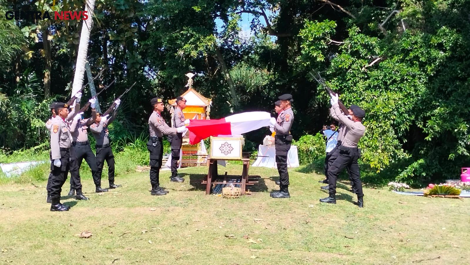 Gentra News Bali – ABIANSEMAL, Upacara perabuan jenasah secara dinas Kepolisian merupakan bentuk penghargaan dan penghormatan terakhir kepada almarhum baik yang masih berdinas aktif maupun yang sudah purnawirawan.