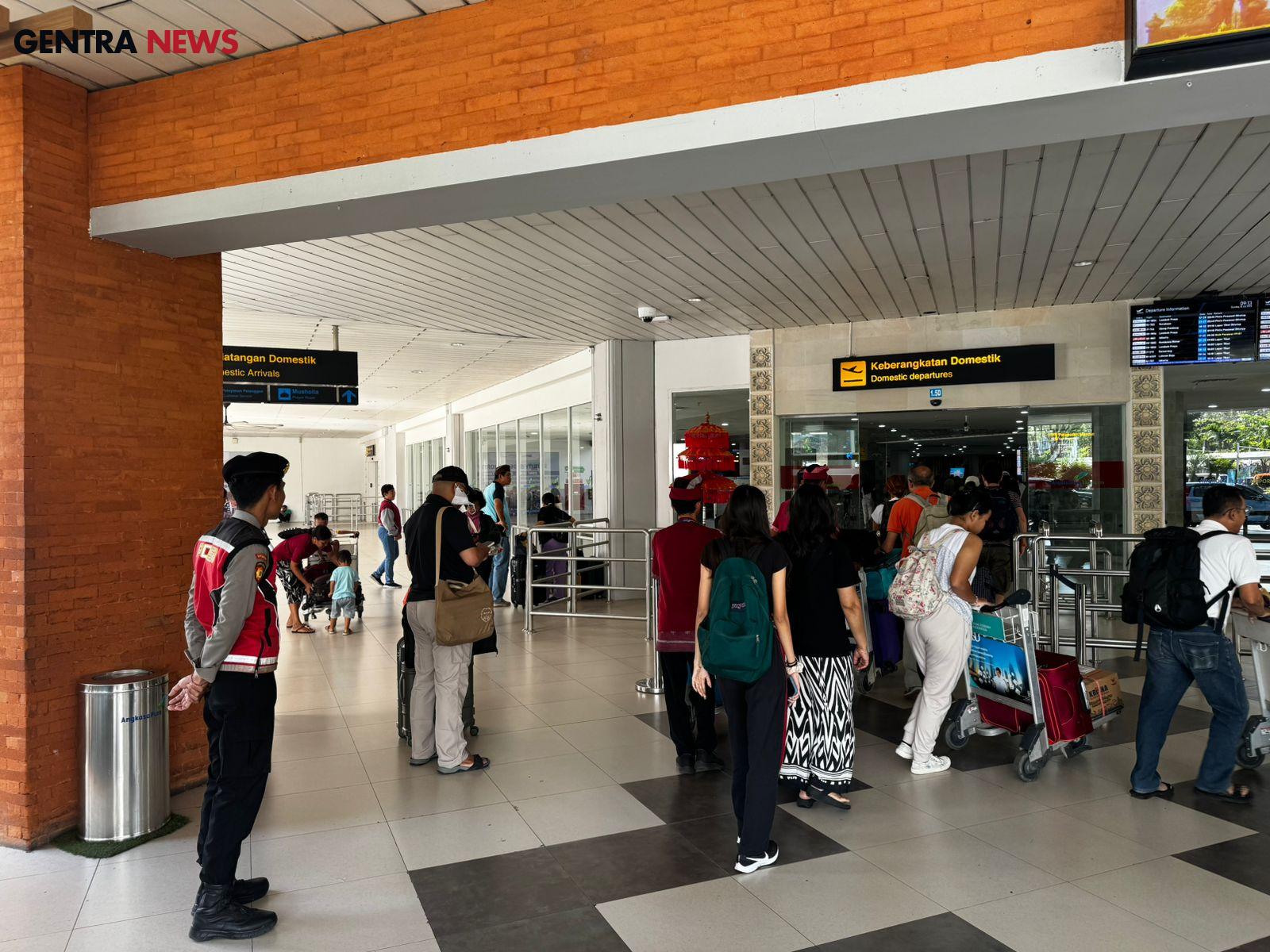 Dalam pantauan siang ini tampak keberangkatan para penumpang melalu terminal keberangkatan domestik masih terpantau normal belum tampak adanya peningkatan namun demikian pengawasan dan pengamanan tetap dilaksanakan oleh personil Polres Kawasan Bandara I Gusti Ngurah Rai.