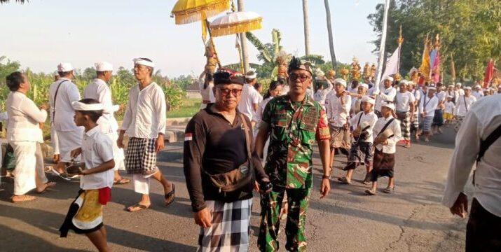 Di tengah prosesi adat tersebut, Serka I Wayan Mardika hadir secara langsung dengan pendekatan yang humanis. Ia bahu membahu bersama Pecalang dalam mengatur arus lalu lintas serta menjaga ketertiban umum sepanjang jalur iring-iringan upacara. Kehadiran Babinsa yang menyatu dengan masyarakat ini memberikan rasa aman dan kenyamanan bagi warga yang tengah melaksanakan ritual keagamaan.