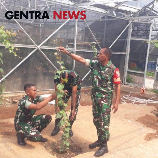 Gentra News NTT – KODIM 1605/BELU, Babinsa Desa Silawan Koramil 1605-07/Wedomu Serma Duarte Dos Santos bersama Kadet Mahasiswa Unhan RI Ben Mboi Prodi Pertanian dan Perkebunan melaksanakan kegiatan pemberian pupuk susulan pada tanaman anggur yang berlokasi di Halaman Gedung Unhan, Desa Fatuketi, Kecamatan Kakuluk Mesak Kabupaten Belu, Senin (2/12/2024).